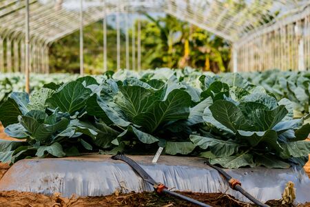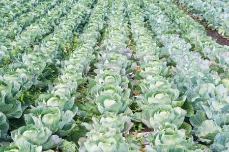 Cauliflower plants and cabbage plants in agriculture field of Thailand farmland.