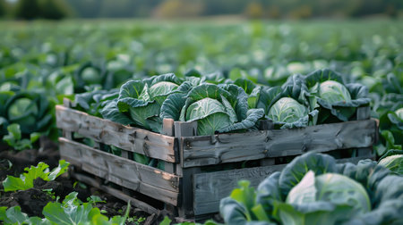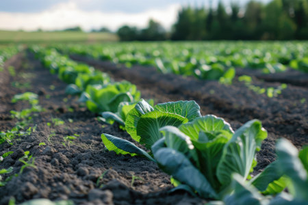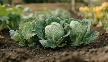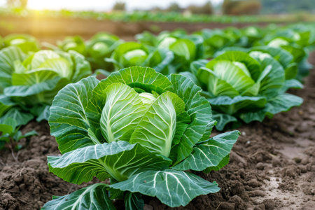 Fresh cabbage plants cultivating in an organic garden with sunlight creating a healthy crop