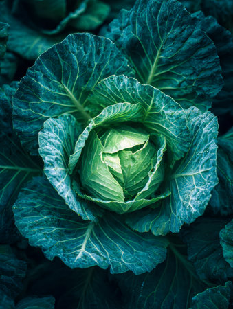 Discover the beauty of lush green cabbage leaves adorned with water droplets, captured in natural lighting. This close-up showcases the vibrant texture and detail of fresh produce, symbolizing health and sustainability.