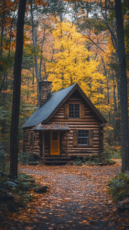 Secluded Log Cabin in Autumn Forest