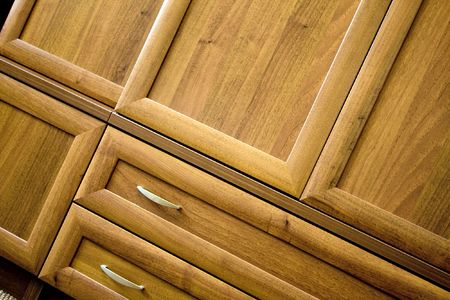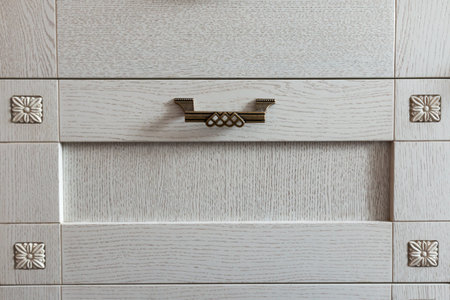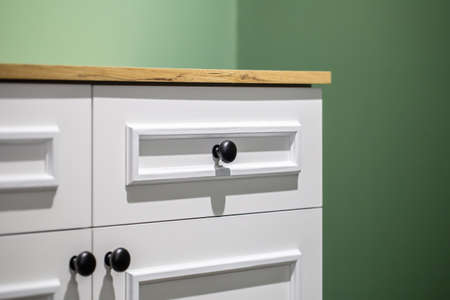Wooden furniture with drawers with handles in the room