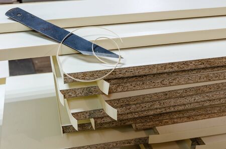 board chipboard cut parts for furniture production close-up