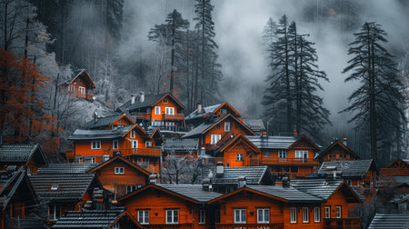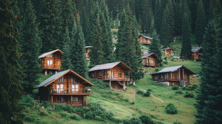 Charming austrian mountain village featuring traditional wooden homes nestled in nature s beauty