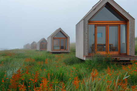 Scenic Tiny Cabins in the Misty Meadow Tranquil Living in the Heart of Nature