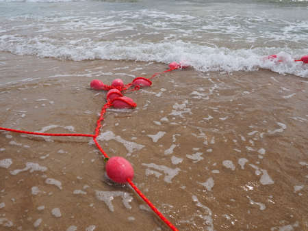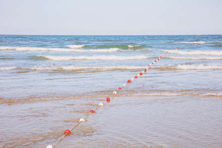 Rope fence in ocean for swimming area. Depth limitation and safe area for people at sea.
