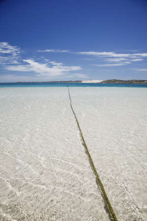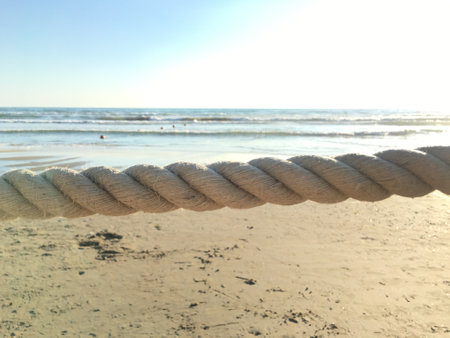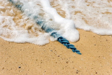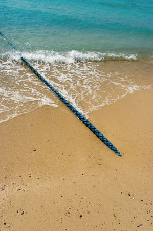 Rope on waters edge on a sunny windy day in Mallorca, Spain for background.