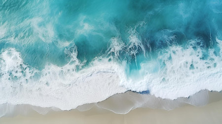 Overhead Drone View of Ocean Waves Meeting Sandy Beach