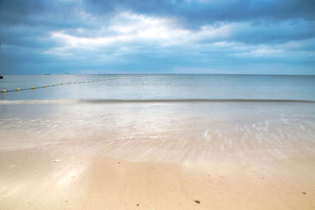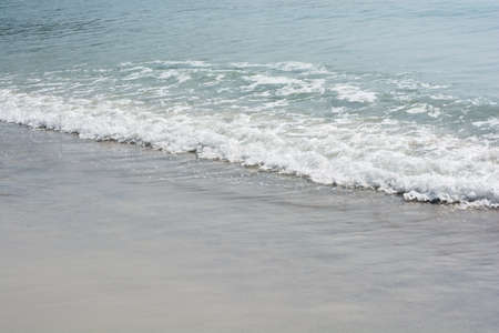 Foamy water on shore. Wet sand on the beach. Island amidst sea. Relax and forget about problems.