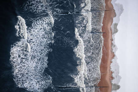 Tourism in Poland. Cold Baltic sea at winter, aerial view of nature