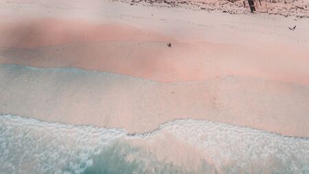 Aerial view of beautiful beach and sea wave. Drone photo.