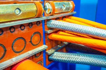 Electric cable close-up. Electrical wires in various colors and shapes.
