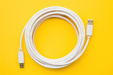 A close-up image of a white USB cable connector against a clean background, perfect for showcasing technology accessories and charging solutions in various applications.
