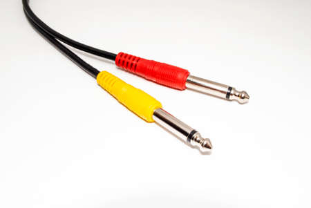 Photo on a white isolated background showing two cables for sound recording. Cord Jack 6.3 mm and RCA jack. You can use this photo as a background for projects related to audio recording, audio connection or a store with cords and cables. High quality photo