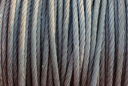 Industrial abstract background. Steel cable close-up photo. New rope lubrication.