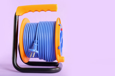 wire electric cable with wooden coil of electric cable waiting to be slipped into the conduit