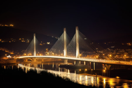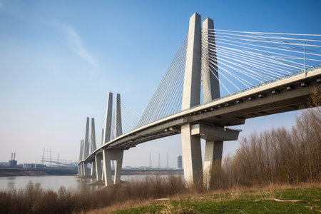 modern bridge, with sleek lines and tall towers, crossing over river, created with generative ai