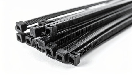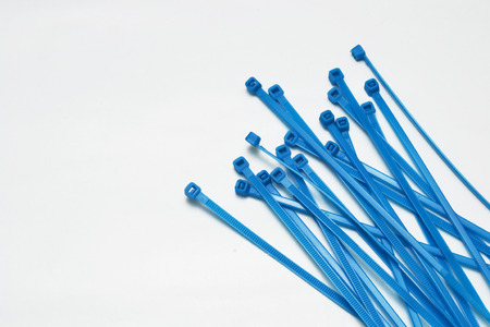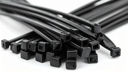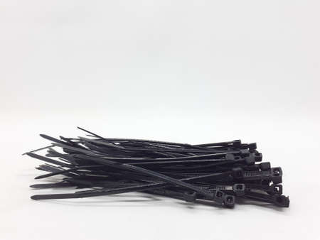 multiple black colored zip ties on white isolation background