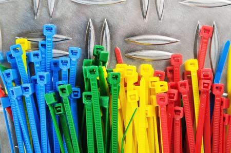 Set colored cable ties, close up