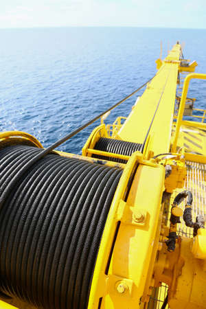 Crane construction on Oil and Rig platform for support heavy cargo, Transfer cargo or basket on work site, Heavy industry, heavy job on the oil and gas platform, Offshore operation on the platform.