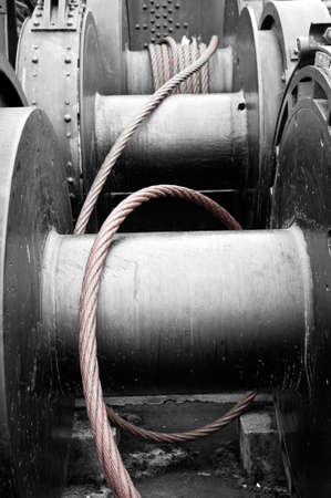 old aged steel cable steel wire or steel rope, rope sling drum black and white tone.