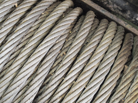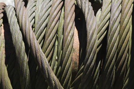 Close-up ptexture photo of steel metal aged and rusty cables.