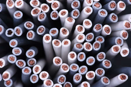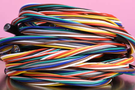 Electric cable close-up. Electrical wires in various colors and shapes.