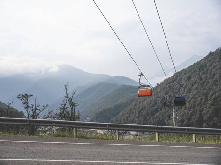 Mountain road and cable car in Caucasus mountains. Sochi, Russia