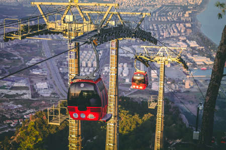 Antalya, Turkey - 22nd October 2017: Cable car on cable way to local height.View from the top of the hill to Antalya city. Must see place for tourists visiting this beautiful city.
