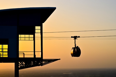 A cable car to Srd hill, a mountain behind the ancient old town Dubrovnik in Dalmatia, Croatia.
