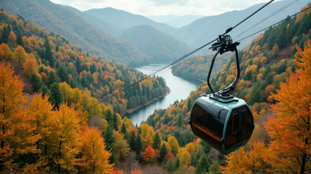 Ride a cable car over vibrant autumn forest and serene river valley for breathtaking scenic views