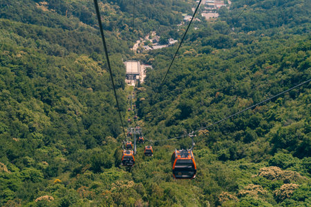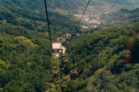 Cable cars traveling on Wugong Mountain in Jiangxi, China