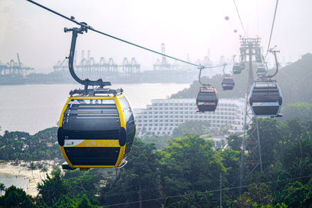 Singapore, August 14, 2023: Sentosa Cable Car is a gondola lift providing an aerial link from Mount Faber to the resort island of Sentosa.