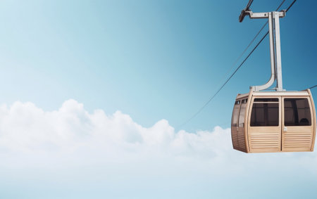 Ascending to Serenity: A Cable Car Journey Under White Clouds --ar 3:2