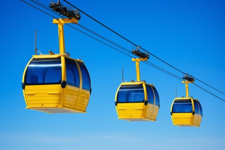 Vibrant Blue and Yellow Cable Way Cabins Soaring Through the Clear Skies