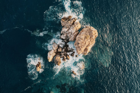 Stunning Aerial Perspective: Captivating Textured Cliffs and Tranquil Turquoise Sea - AR 3:2