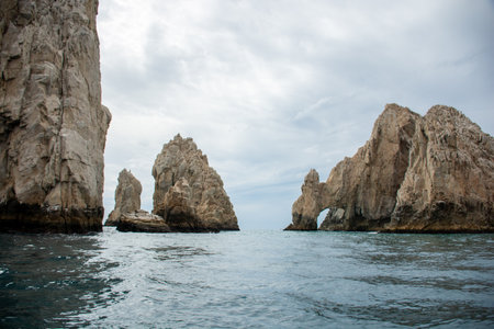 View of the Arch in Los Cabos, Baja California, Mexico. The Cabo Arch on a cloudy winter day.