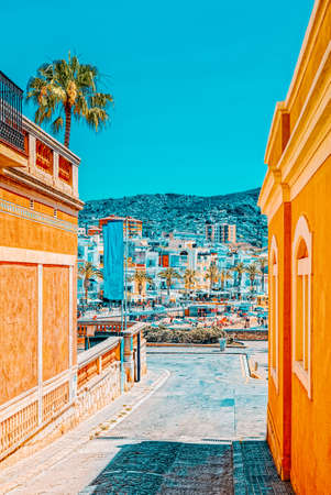 View of the embankment and the promenade in small resort town-Sitges in the suburbs of Barcelona. Spain.
