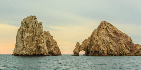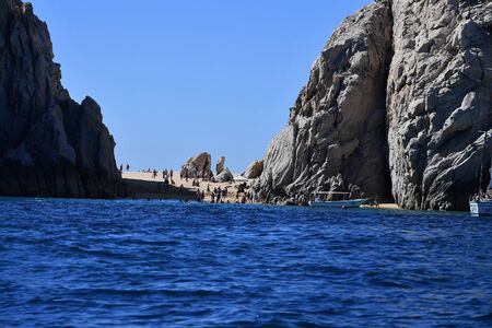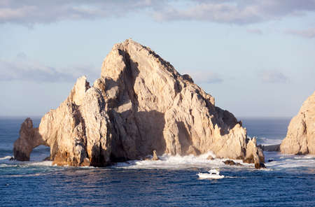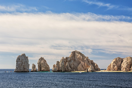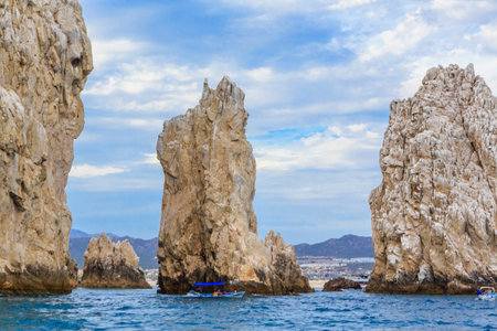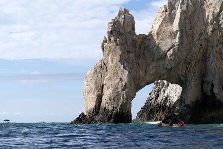 Scenic landmark tourist destination Arch of Cabo San Lucas, El Arco, whale watching and snorkeling spot.