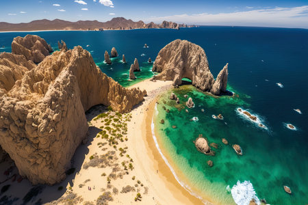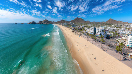 Generative AI : Aerial view of hotels on the beach Cabo San Lucas Baja California Mexico