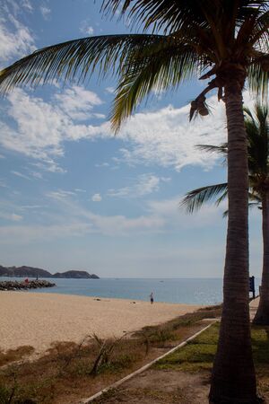 View of the Huatulco bay coast line with blue ocean in Mexico