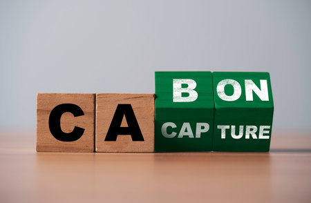 Flipping of block cube of carbon capture for decrease CO2 , carbon footprint and carbon credit to limit global warming from climate change, Bio Circular Green Economy concept.