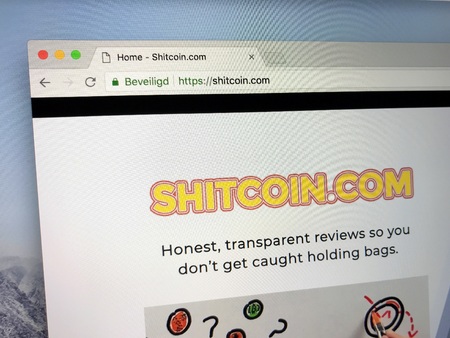 Amsterdam, the Netherlands - July 9, 2018: Website of Shitcoin.com, a controversial cryptocurrency reviewing site.