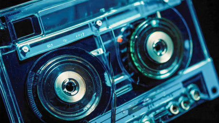 Neon retro cassette tape glowing in vibrant pink and blue hues, perfect for vintage aesthetics and nostalgic vibes. Generated A.I.