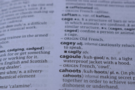 English Dictionary Page Close Up With The Word Of Print -cagoule