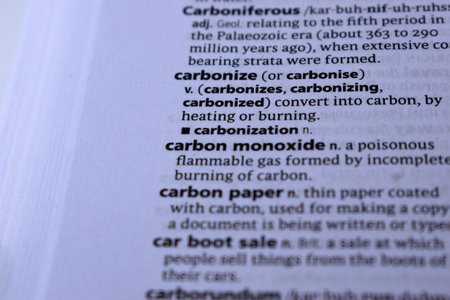 English Dictionary Page Print Close Up With The Word Meaning Of -carbonized