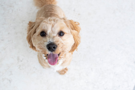 Maltipoo dog. Portrait of a dog after grooming.