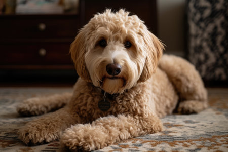 Australian Labradoodle is a mix between the Labrador Retriever and Cocker Spaniel. AI Generated