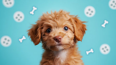 Adorable Puppy Photoshoot with Bright and Colorful Background Featuring Playful Toys and Cute Poodle Mix Dog AI Generative