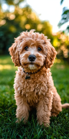 Cute Cavoodle Puppy Playfully Enjoying a Sunny Day on Green Grass, Exuding Pure Joy and Happiness.