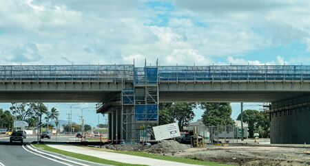 Mackay, Queensland, Australia - July 2019: Roadwork infrastructure building a new highway overpass
